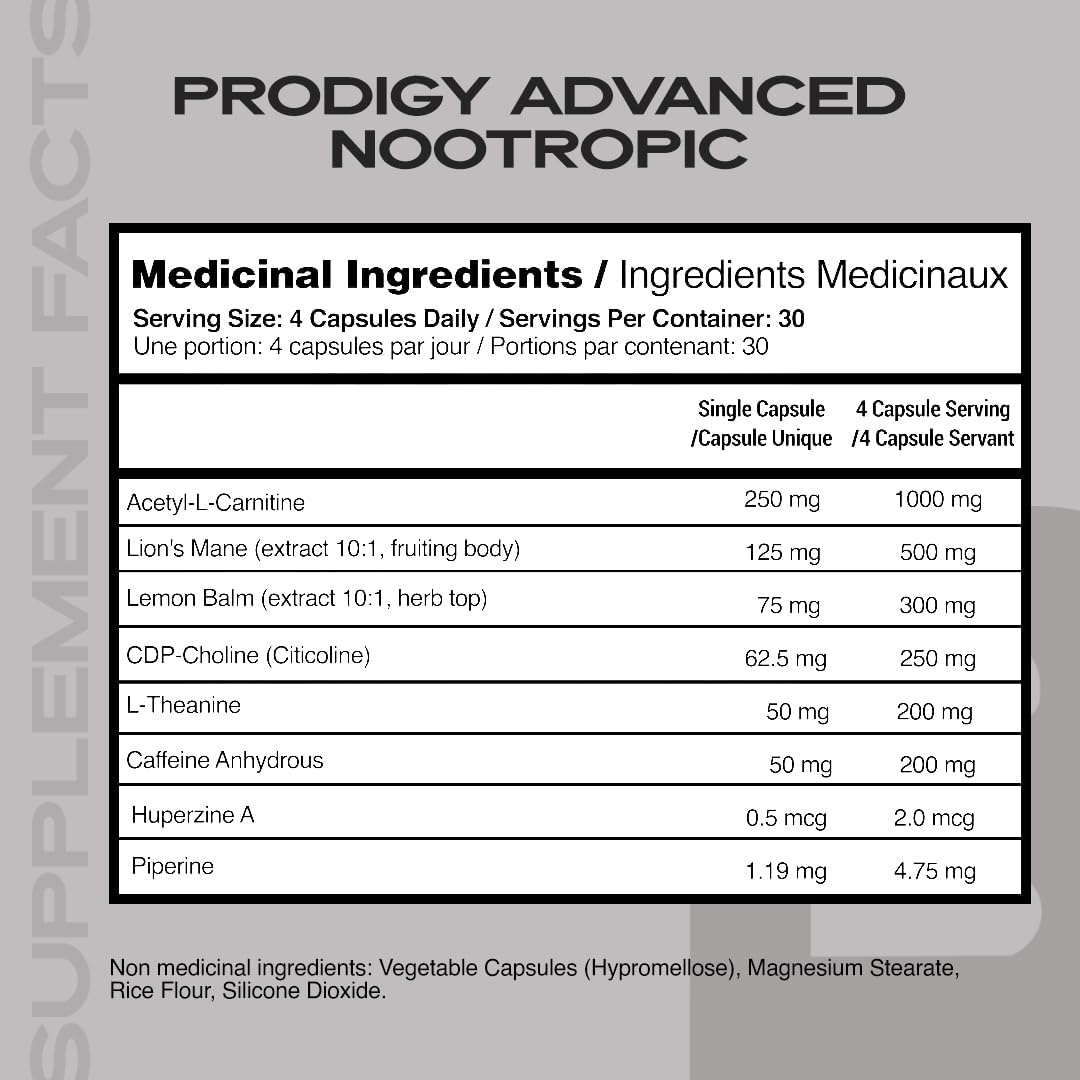 - Elevate Your Focus: Prodigy is an advanced nootropic brain booster designed to support cognitive function and overall well-being. This powerful formula is packed with natural ingredients to help you with various important functions.