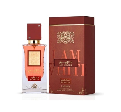 Ana Abiyedh Scarlet by Lattafa Perfumes is a Floral Fruity Gourmand fragrance for women. This is a new fragrance. Ana Abiyedh Scarlet was launched in 2025. Top notes are Black Cherry and Pink Pepper; middle notes are White Rose, Peony, Tonka Bean and Nutmeg; base notes are Sugar, Vanilla, Patchouli and Caramel.Top notes: Black cherry, pink pepper
