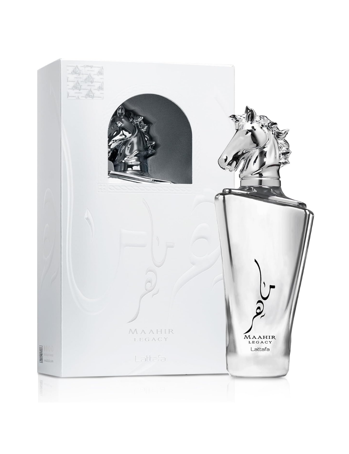 Maahir Legacy 100ml is a distinguished fragrance with top notes of Lime, Grapefruit, Lavender and Spearmint, complemented by middle notes of Juniper Berry, Rosemary, Olibanum Resinoid, Geranium, and Black Pepper. The signature of the scent lies in its base of Vetiver, Cashmeran, Ambrox, Oak Moss, and Tonka Bean. These complementary layers create a unique and captivating aroma that is sure to be remembered.