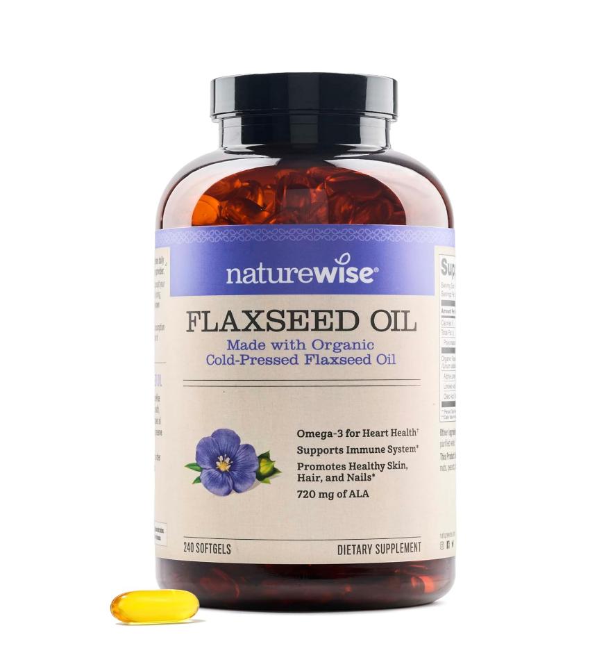 Omega-3 essential fatty acids are an important part of any healthy diet. They help keep your brain and heart healthy and support a healthy inflammatory and immune response. Most omega-3 supplements are fish oil supplements, but many people have concerns about the environmental toxins and mercury content often found in fish, as well as the sustainability and ethics of fishing. That's why NatureWise provided a greener solution to omega-3 supplementation. NatureWise Flaxseed Oil is a rich, plant-based source of essential omega-3 fatty acids, along with essential omega-6 and nonessential omega-9. These fatty acids also nourish your hair, skin, and nails.* Each serving is standardized to provide 720 mg of ALA, or alpha linolenic acid, an omega-3 fatty acid that the body converts into EPA and DHA — the same omega-3s commonly found in fish oils. Certified organic and non-GMO, this flaxseed oil supplement is a clean alternative to fish oil supplements.* NatureWise Flaxseed Oil is cold-pressed and unrefined to keep the benefits of flaxseeds without the use of heat, hexane, or chemicals.