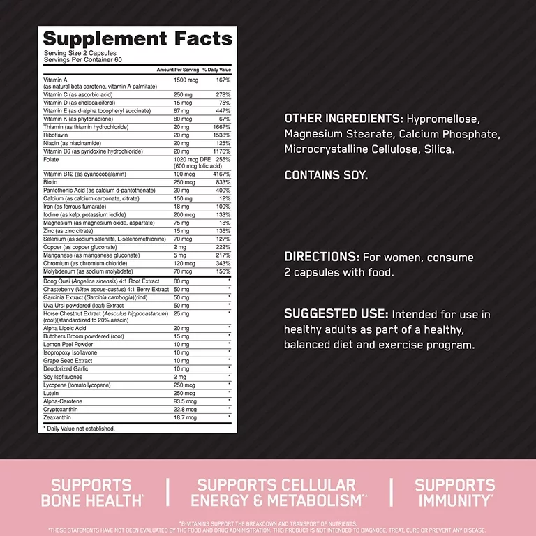- One 60 tablet container (30 day supply) of Optimum Nutrition Opti-Women Daily Multivitamin for Women