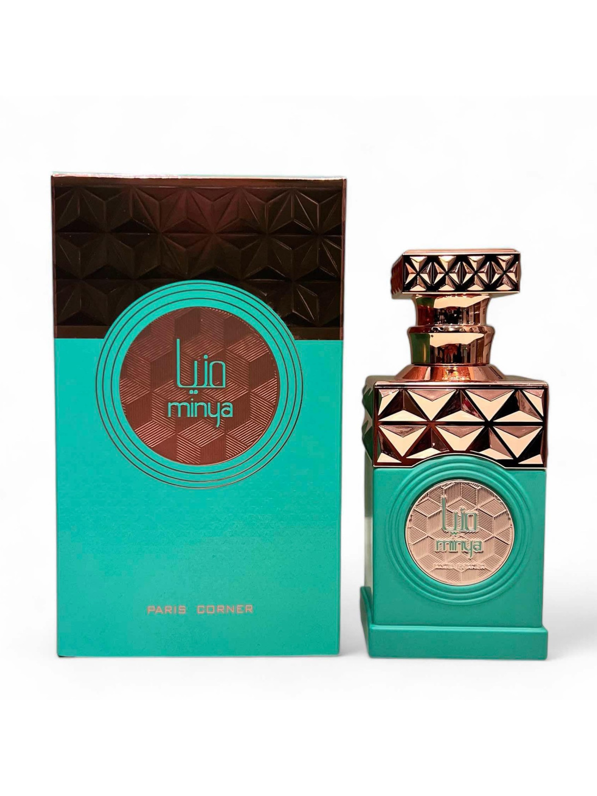 Minya Eau de Parfum by Paris Corner is a unisex fragrance that combines elegance and refinement. It features a captivating blend of pistachio and almond, with jasmine adding a soft, pleasant trail. The fragrance concludes with a base of sandalwood, vanilla, and salted caramel, offering a charming and refined scent.