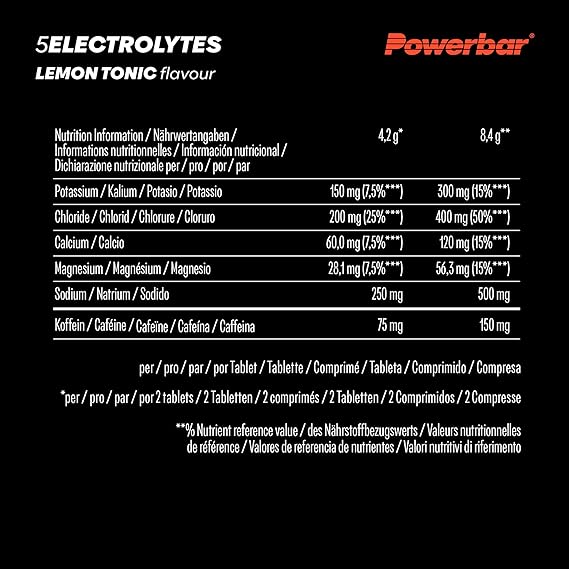 During selected workouts you only want to drink water to avoid the consumption of calories or carbohydrates or to optimise your fat metabolism. However, during exercise you lose electrolytes through sweat, which have many important functions in the body. This is exactly where the Powerbar 5 Electrolytes effervescent tablets come in. They dissolve into a high-quality, calorie-free drink containing the electrolytes which you lose the most through sweat – it’s ideal whenever you do sports, but don’t want to consume any calories or sugars.