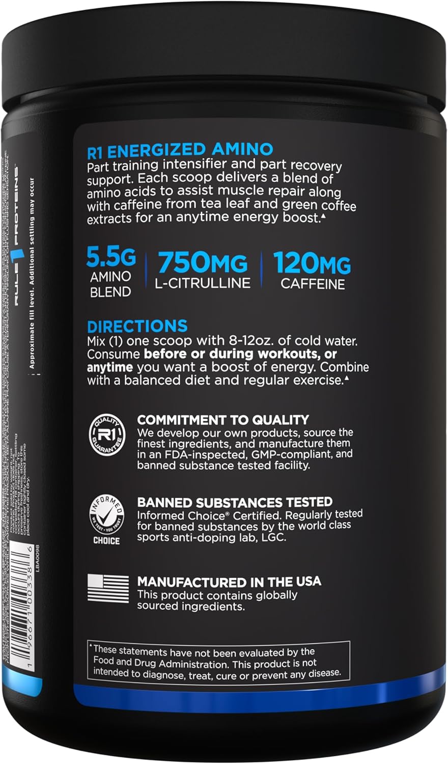 - Clean Manufacturing: Energized Amino is proudly made in our own state-of-the-art GMP-certified facilities in the USA. It's produced with premium globally sourced ingredients and is banned substance tested by Informed Choice.