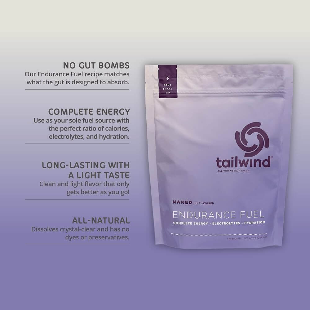 Tailwind mixes with water to meet all your calorie, hydration, and electrolyte needs, without upsetting your stomach or making your taste buds revolt. Just toss it in a bottle or hydration pack, shake, and GO!