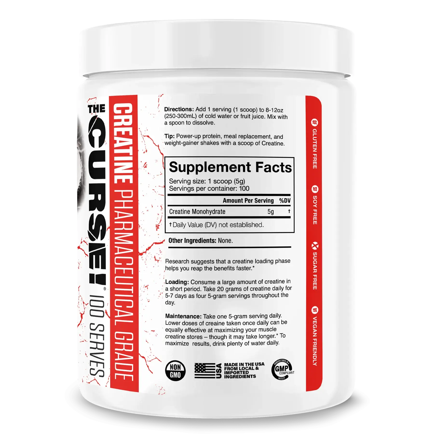 - 100 DAY SUPPLY: Never worry about running out again. The Curse! Creatine delivers 500 Grams of PURE MICRONIZED CREATINE MONOHYDRATE POWDER per bottle: that's 5g per serving, and 100 servings per tub! (Scoop Included)
